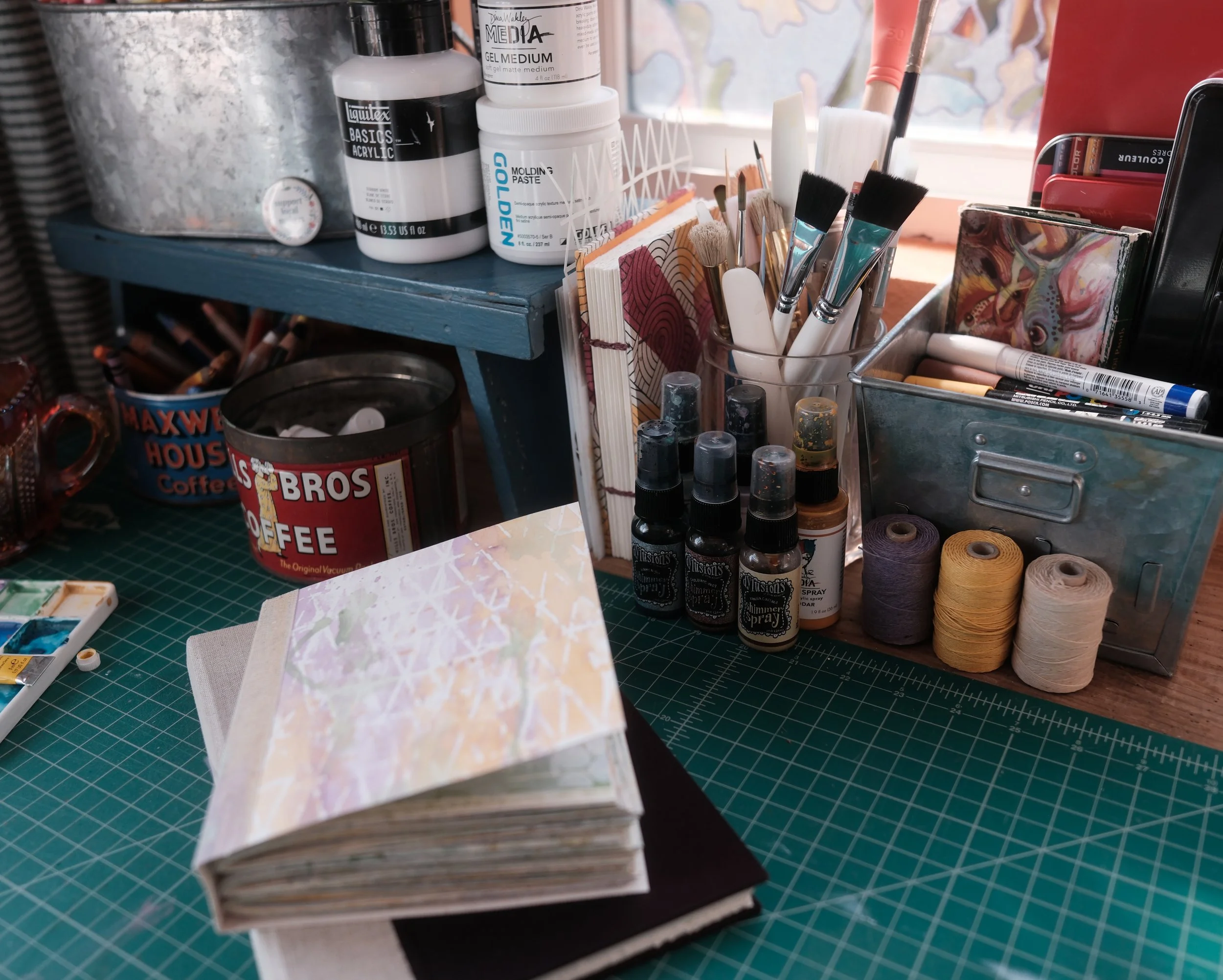 Handmade journals, sketchbooks, guest books, and mixed media art all to come.